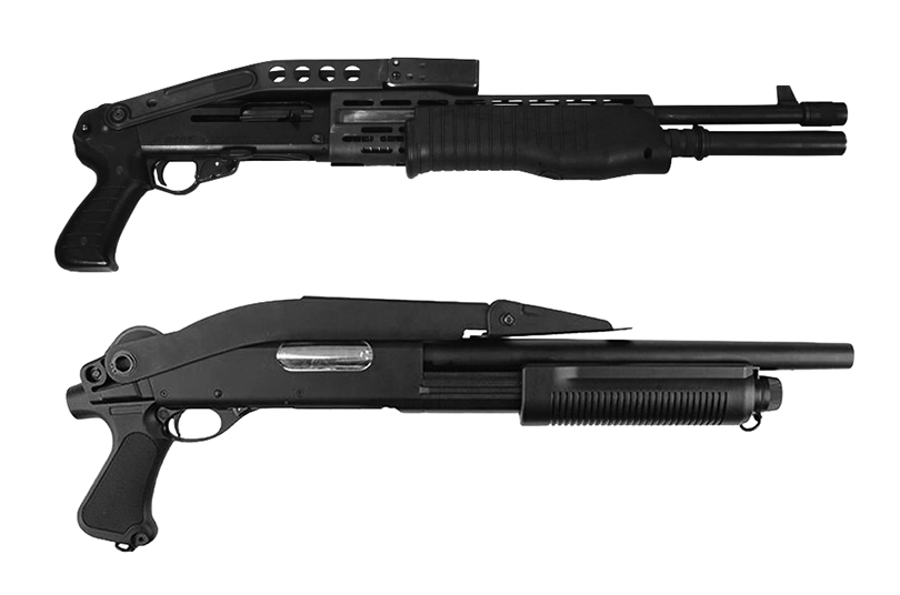 The real difference between the two images is the one on the left, Muldoon is carrying a SPAS-12 shotgun with a folding stock. A replica shotgun would cost £300+ and the folding stock is really hard to source. In the right-hand image, Muldoon is carrying an alternate short shotgun that costs under £50 and can shoot BBs. Total cost savings of over £250 on just one item.