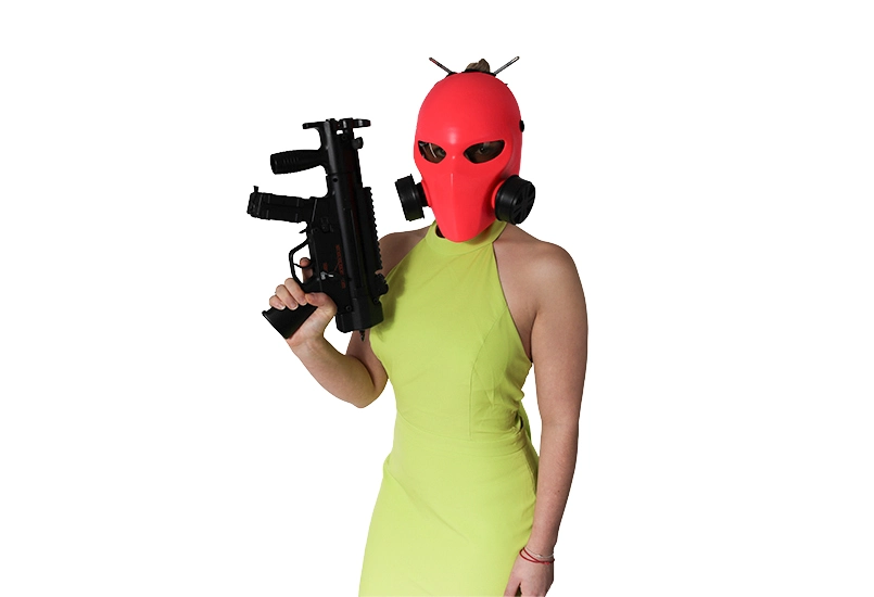 The creation of a 3D printed replica of the pink mask from the movie "6 Underground".
