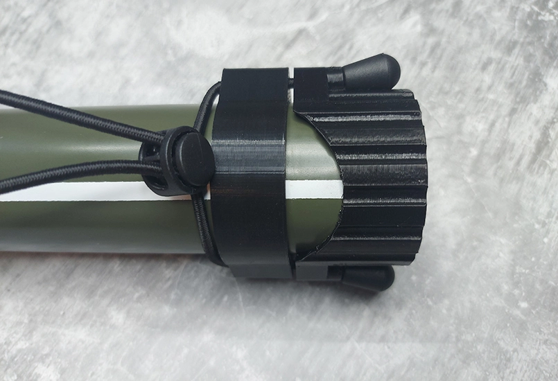 The goal was simple. Create a large, obvious striker surface that is easy to use, and protect the open end of the tube from the elements. It needed to stay attached to the mortar at all times, work with slightly different tube diameters, and survive being knocked, dropped, and abused in the field.