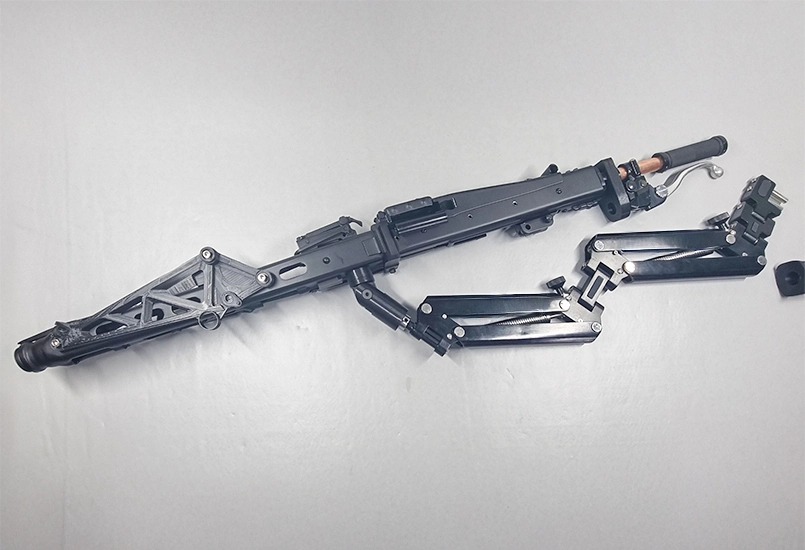 This project set out to recreate the Smartgun not as a static cosplay prop, but as a functional, game-usable airsoft build that stayed visually faithful to the original film version. The approach followed the same philosophy used in the movie itself. A real-world machine gun platform was used as the donor, with a combination of 3D-printed components, metal fabrication, and found parts layered on top to achieve the correct silhouette, proportions, and mechanical presence.