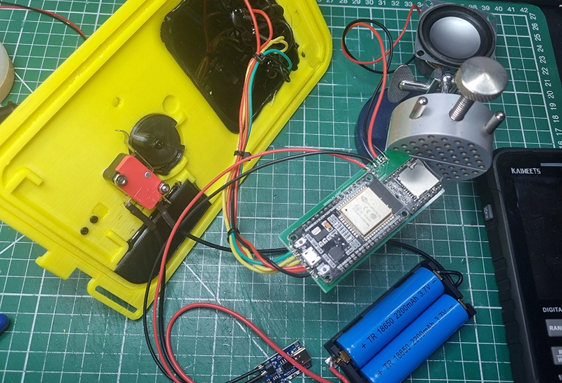 Rather than retrofitting real-world Geiger counters, a hollow classic-style yellow shell was used. The enclosure is clearly 3D printed, lightweight, and not intended as a museum replica. Five large LEDs and an oversized switch were chosen for clarity under stress, prioritising usability over realism.