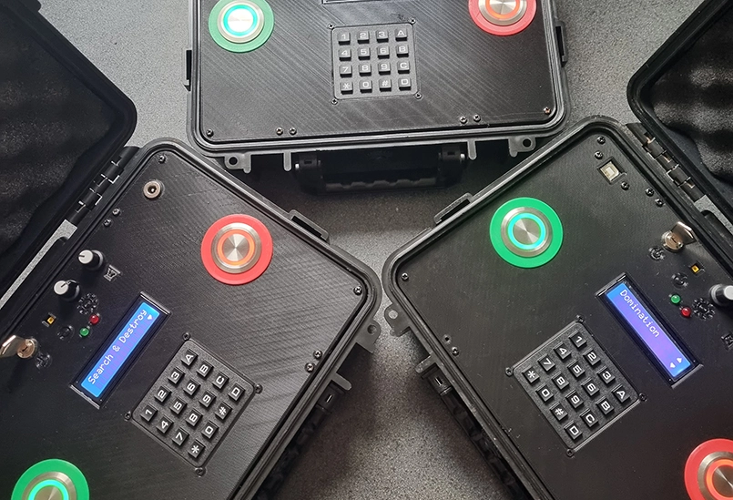 The original idea came from seeing an M-COM-style device on Instructables, built around an Arduino and a handful of basic game modes. At the time, most airsoft objective games relied on flags, cones, or static markers. They worked, but they were abstract. There was no tension in interacting with them, no consequence beyond “touch it and move on.”