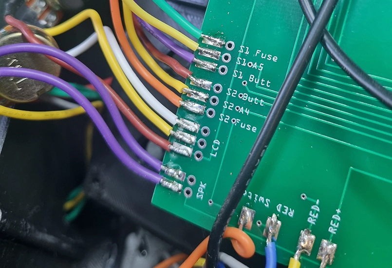 The earliest version was crude. A large waterproof equipment case housed an Arduino, an LCD screen, a keypad, and oversized red and green team buttons. Everything inside was hand-wired. If you opened it up, it looked like a plate of multicoloured spaghetti. It worked, but it was fragile, difficult to maintain, and painful to modify.